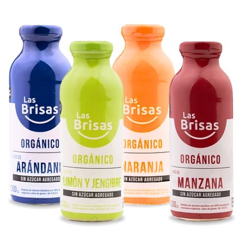 Jugos frescos y naturales, elaborados con frutas y vegetales orgánicos certificados. Refrescante, saludable y sin azúcares añadidos