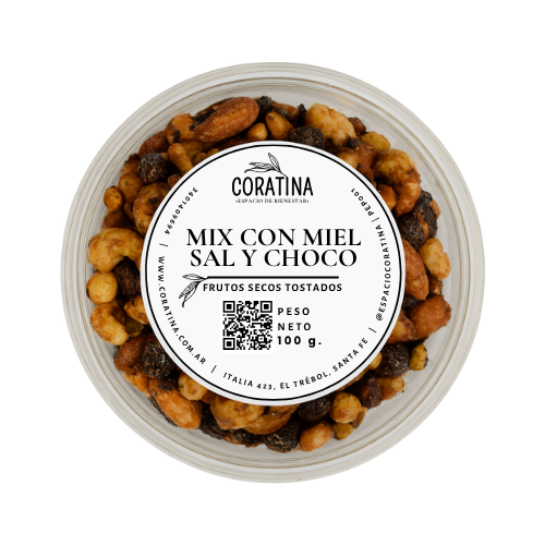 Una mezcla premium de almendras, avellanas, pistachos, castañas de cajú y maní, tostados con miel y sal marina, y coronados con delicados hilos de chocolate. Un equilibrio perfecto entre lo crujiente, lo dulce y un toque de sal que realza todos los sabores.