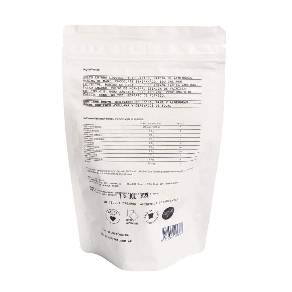 Las Cookies Célula son la opción perfecta para disfrutar de algo dulce y nutritivo sin salir de una alimentación saludable. Elaboradas con ingredientes reales y funcionales, son ricas en proteínas, grasas saludables y bajas en carbohidratos.