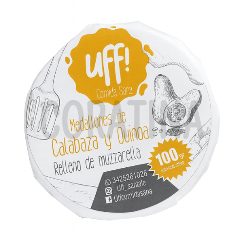 Ingredientes: Calabaza, arroz yamaní integral, pan rallado, agua, queso muzzarella, cebolla, mijo, mix de semillas (lino, chía, sésamo, amaranto, quinoa), quinoa, avena arrollada, salvado de avena, sal, pimienta.
