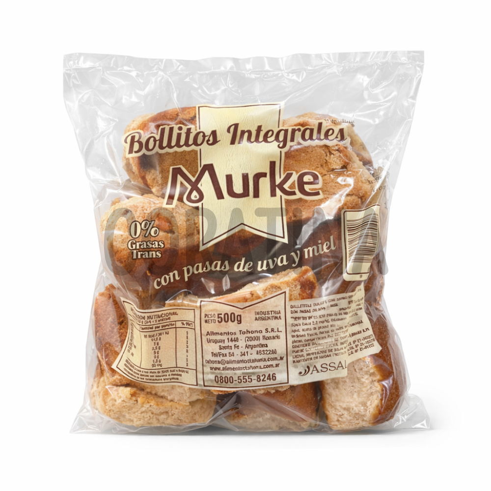 Los bollitos Murke combinan la dulzura natural de la miel con pasas de uva, elaborados con harina integral, logrando un sabor casero ideal para acompañar tus momentos de pausa.