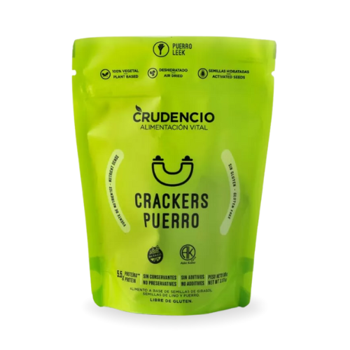 Crackers saladas, crocantes y naturales, elaboradas con semillas de lino, girasol y puerro. Súper saciantes y llenas de sabor.