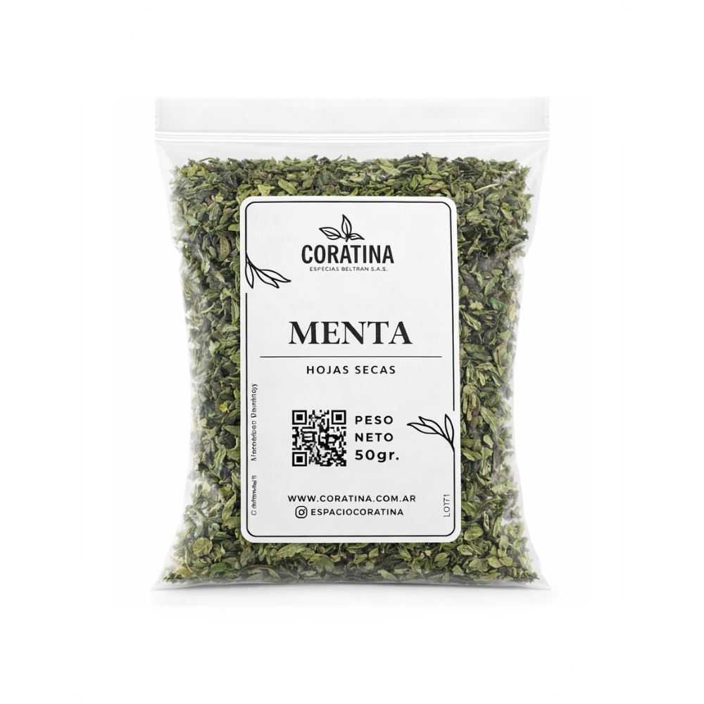 Hojas secas de menta 100% natural, ideales para preparar una infusión refrescante y digestiva. Una opción liviana y aromática para tu bienestar diario.