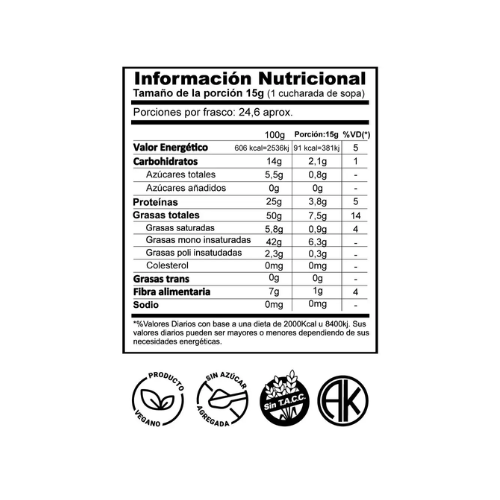 Elaborada con maní tostado y seleccionados, esta pasta es una fuente vegetal de energía y proteínas.