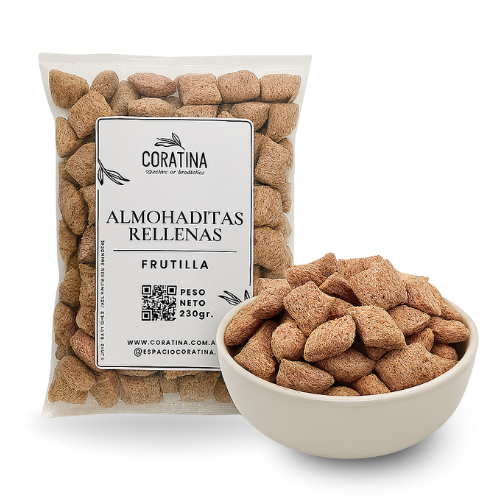 Producto a base de harinas de trigo, maíz y avena, con relleno sabor frutilla.